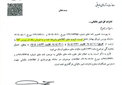 ارسال لیست تاییدیه های کالاهای پذیرفته شده در بورس کالا